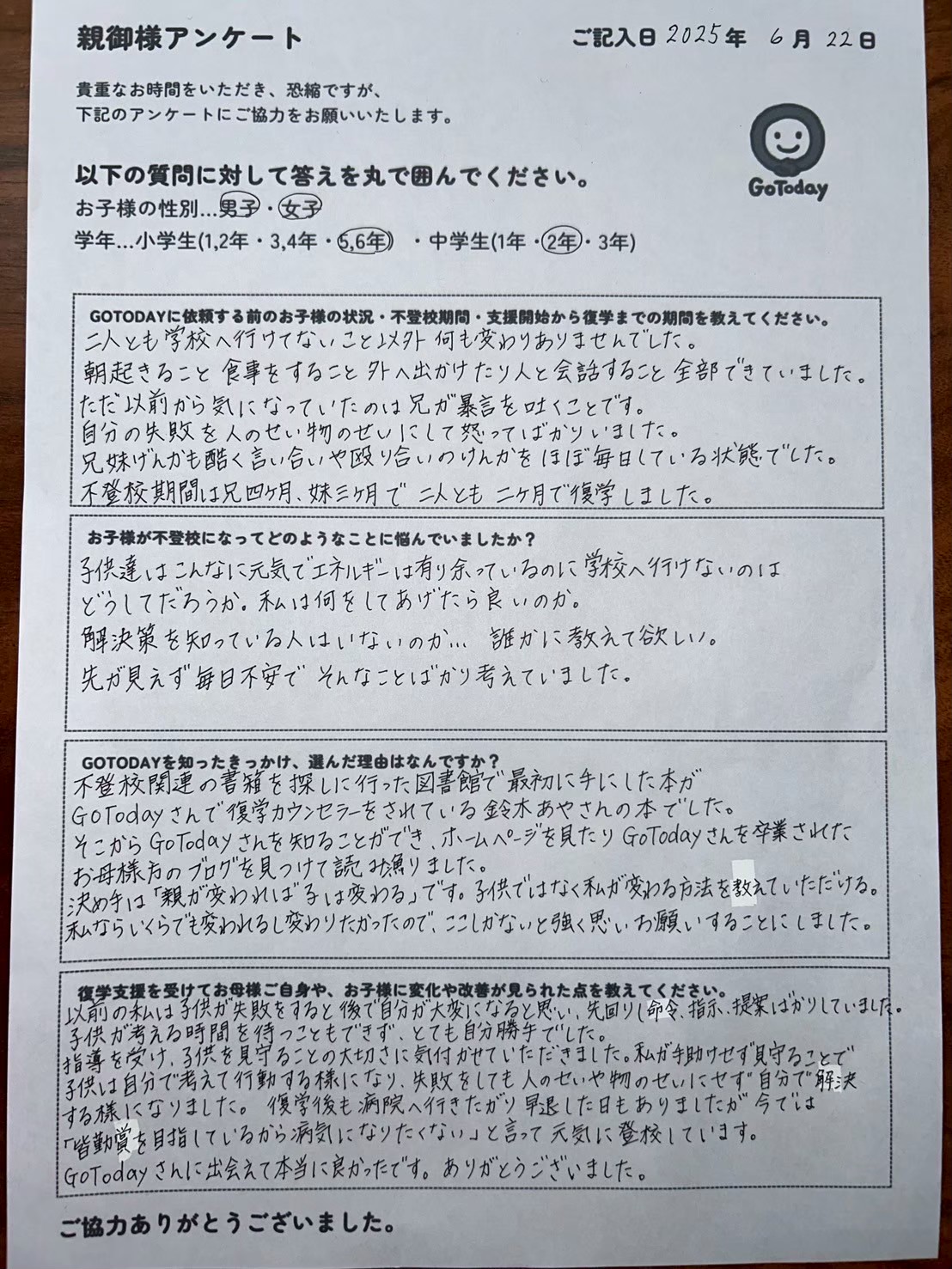 そこからGoTodayさんを知ることができ、ホームページを見たり、GoTodayさんを卒業されたお母様方のブログを見つけて読み漁りました。